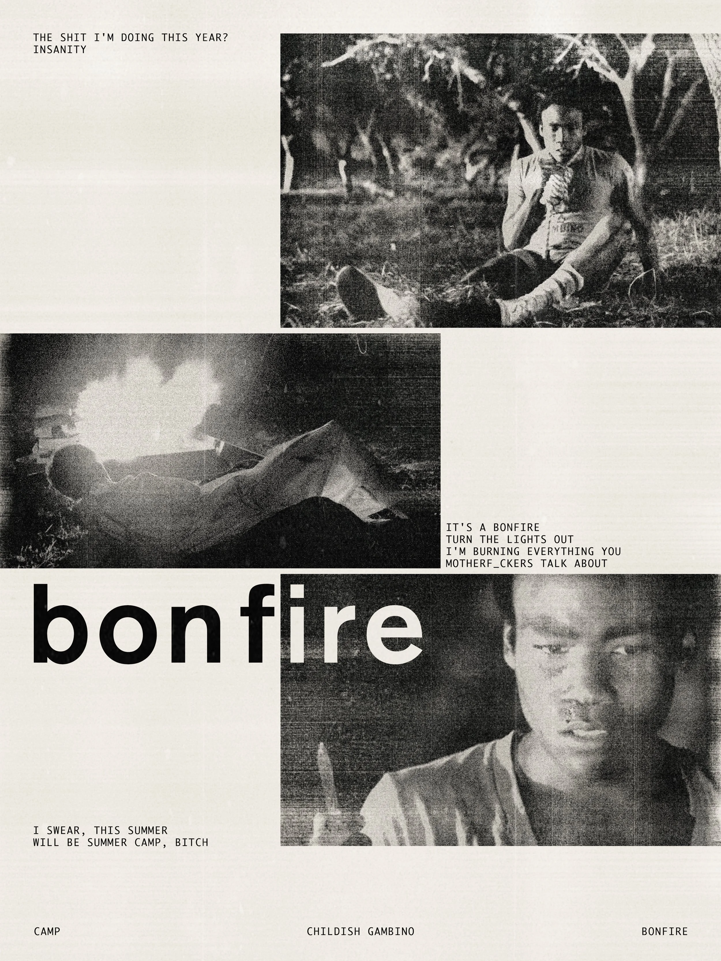 This poster series grew out of an ongoing interest in typography, image-making, and the music that has shaped my creative instincts over time. Each piece uses lyrics, mood, and repetition as starting points, translating sound into visual form through scale, contrast, grain, and intentional imperfection. Rather than working within fixed systems, the process is led by rhythm and intuition, allowing the composition to evolve naturally.