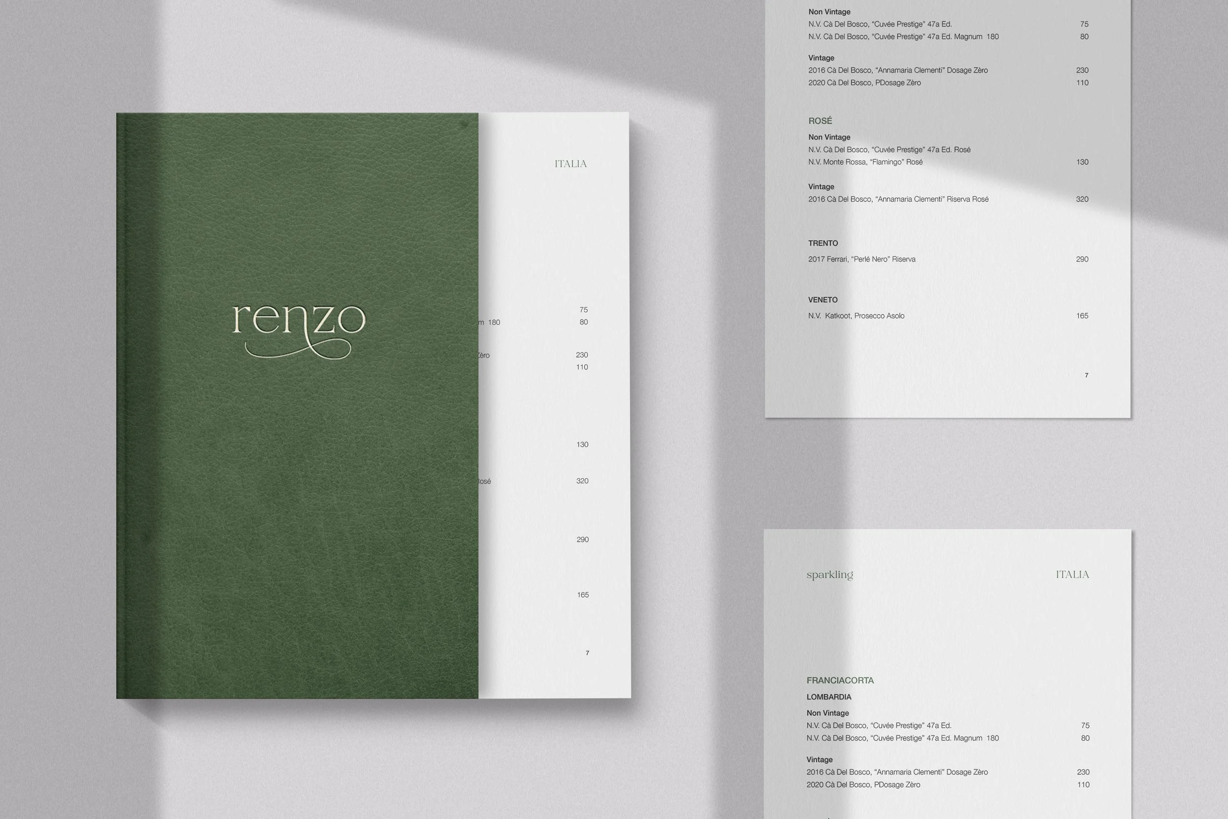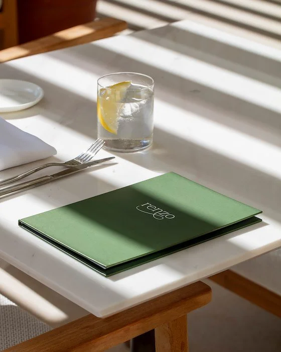 The resulting system was applied across menus and branded guest touchpoints, designed to feel cinematic yet approachable and deeply connected to its setting. Each element supports the experience of lingering, conversation, and shared dining, reinforcing Renzo as a place shaped by atmosphere, intention, and place.