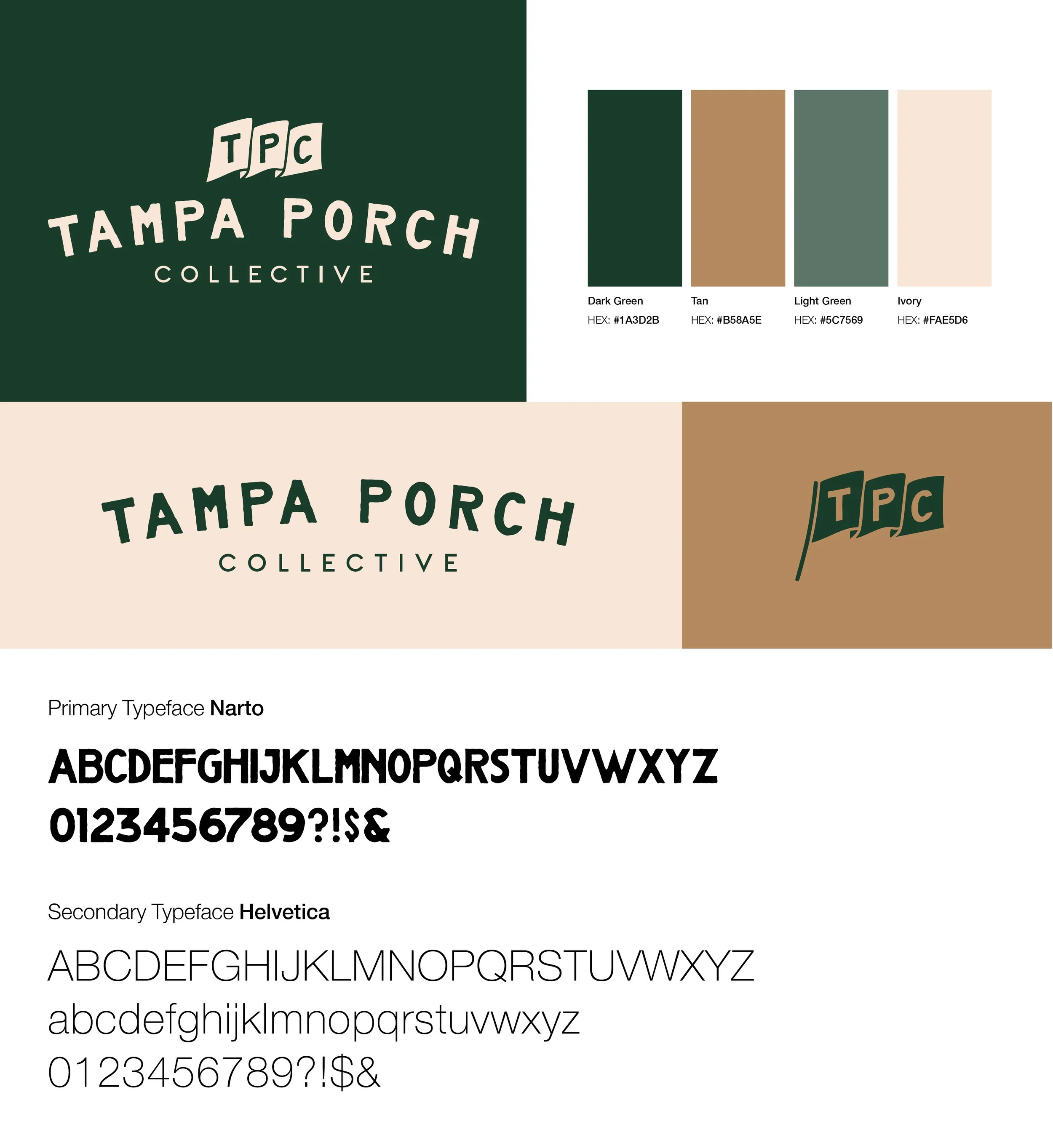 I created the complete brand identity for Tampa Porch Collective, shaping the logo, visual language, and overall creative direction from the ground up. The goal was to build a brand that felt playful and approachable while remaining thoughtfully designed and easy to recognize across platforms. I developed a cohesive system that could flex across social media, digital assets, and branded merchandise, supporting both storytelling and seasonal promotions.